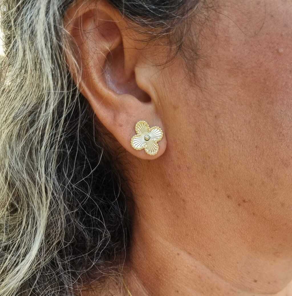 O Brinco Trevo Diamantado é uma semijoia que une charme, sofisticação e o símbolo universal da sorte. Com banho em ouro e acabamento diamantado, ele é perfeito para quem acredita que boas energias também fazem parte do estilo.