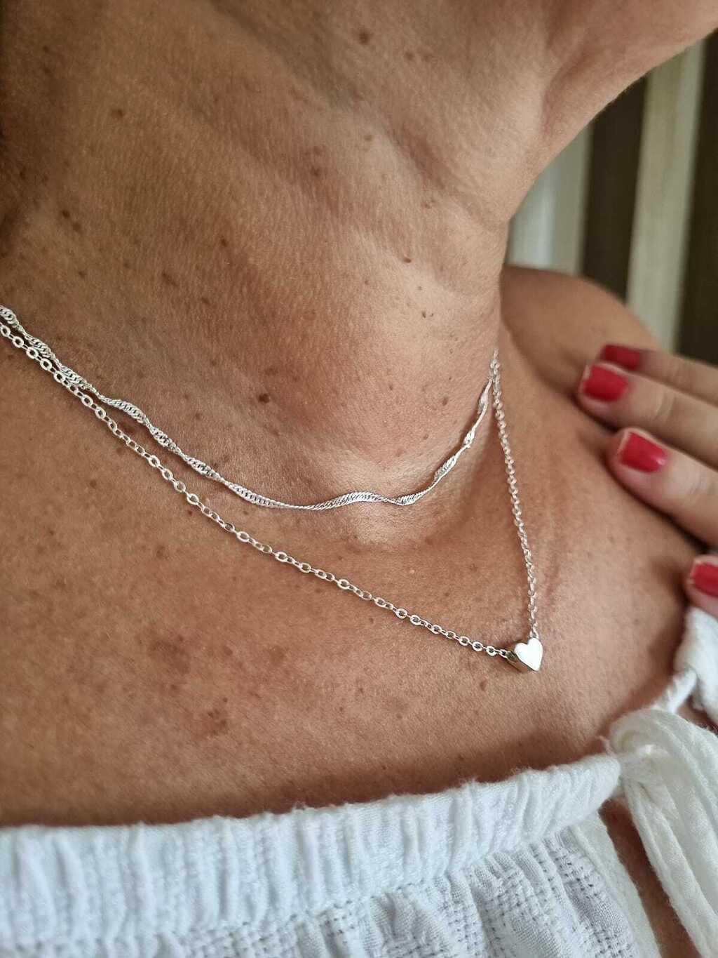 Design duplo com corrente torcidinha + corrente com pingente de coração
