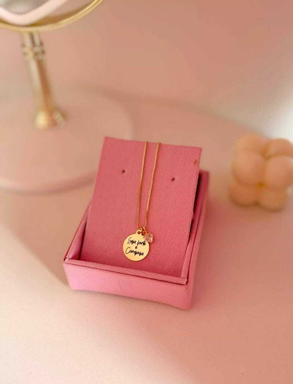 O Colar "Seja Forte e Corajosa" é uma semijoia com propósito: traz uma medalha gravada com a mensagem inspiradora "Seja Forte e Corajosa", acompanhada de um delicado pingente de ponto de luz em formato de coração, como símbolo da presença divina e da sua própria luz interior.