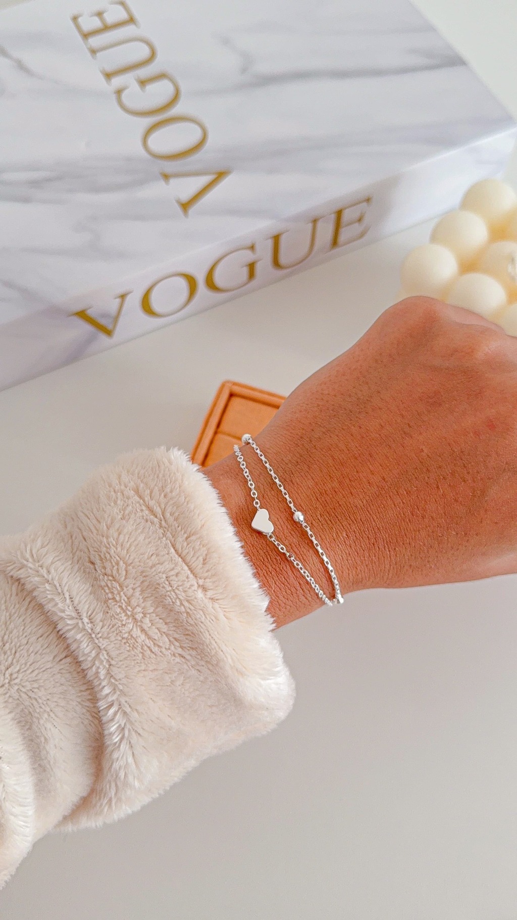 Romântica e sofisticada, a Pulseira Dupla Coração traz um design duplo que une duas tendências em uma só peça: uma corrente com detalhes em mini bolinhas e outra com um pingente de coração minimalista que simboliza afeto, conexão e leveza.